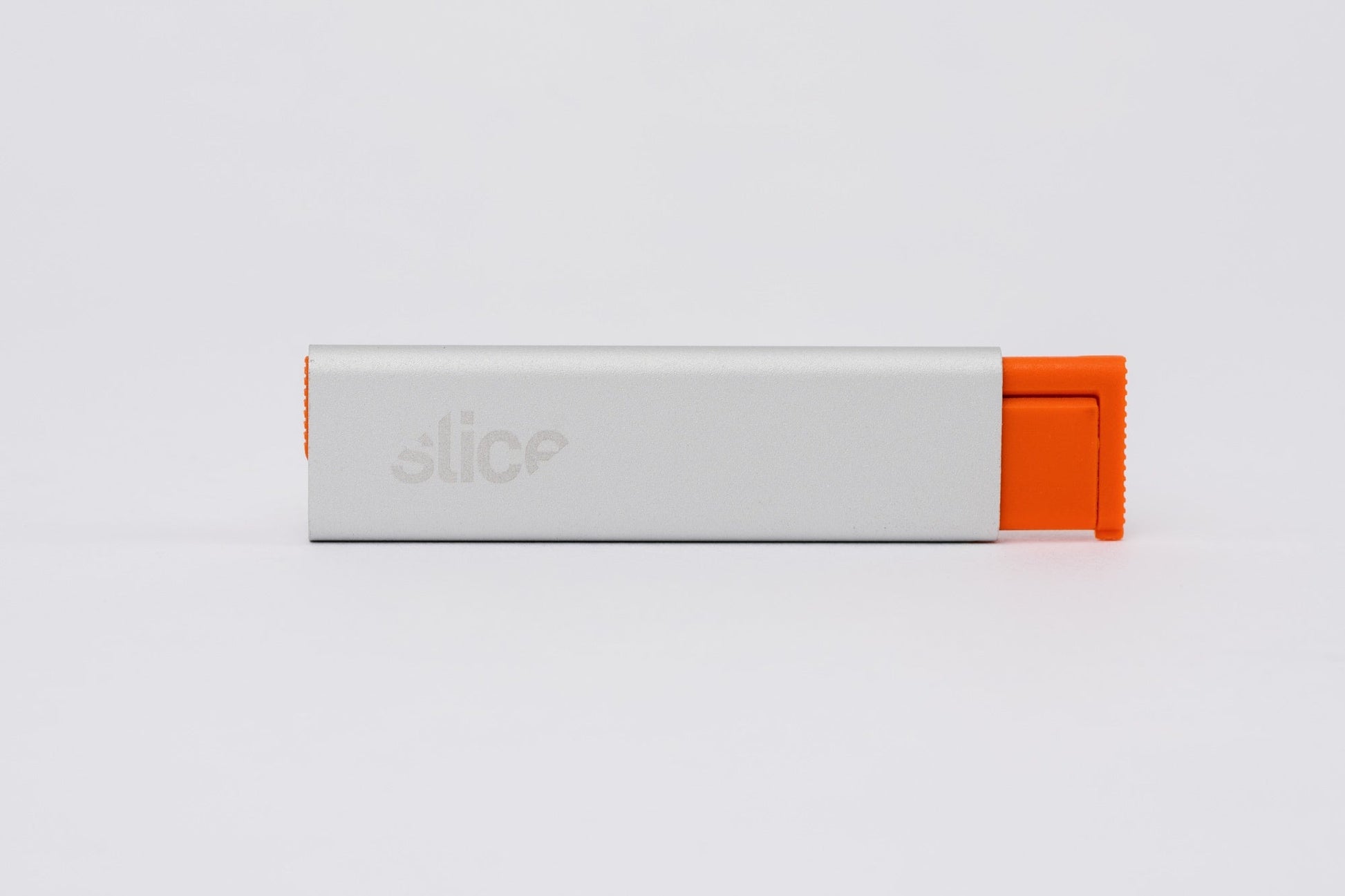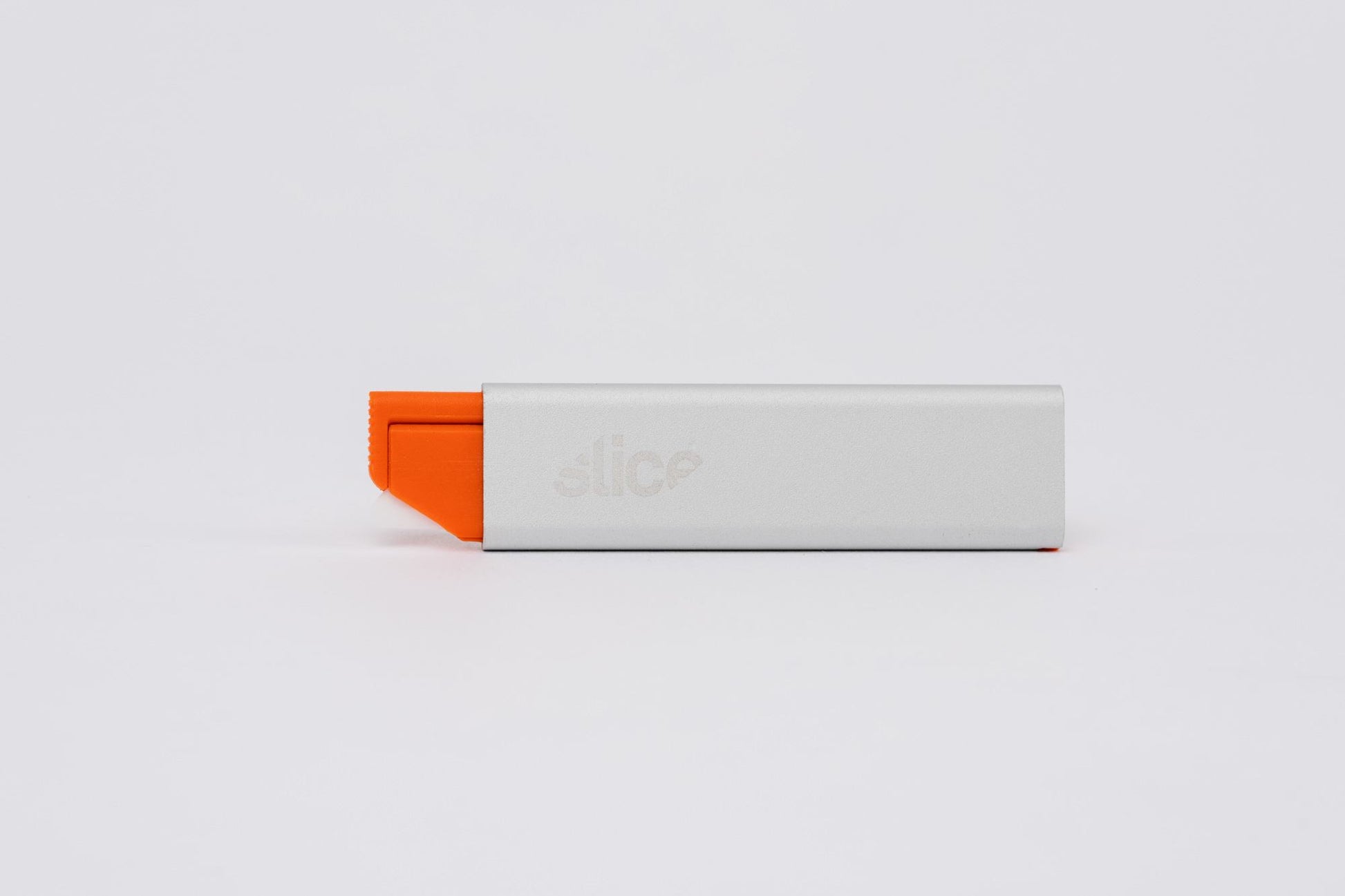 El cutter para cartón 10585 de Slice® es una novedosa incorporación a nuestra ya variada colección de cutters de seguridad. Como indica su nombre, el diseño de esta herramienta, y la longitud y ángulo de la parte expuesta de la cuchilla, son ideales para cortar cajas de cartón y cartones ondulados delgados. Este cutter para cartón (manual) de Slice expone únicamente la parte de la cuchilla que se necesita para cortar fácilmente cajas de cartón sin dañar el contenido de los paquetes. Deslice la cubierta protectora de metal para cubrir o descubrir la cuchilla cuando lo necesite. El cutter 10585 está equipado con una cuchilla 10526 de punta redondeada. Al igual que el resto de las herramientas de Slice, la cuchilla cuenta con nuestro filo finger-friendly® y es químicamente inerte, nunca se oxida y dura hasta 11 veces más que otras cuchillas de metal de características similares.