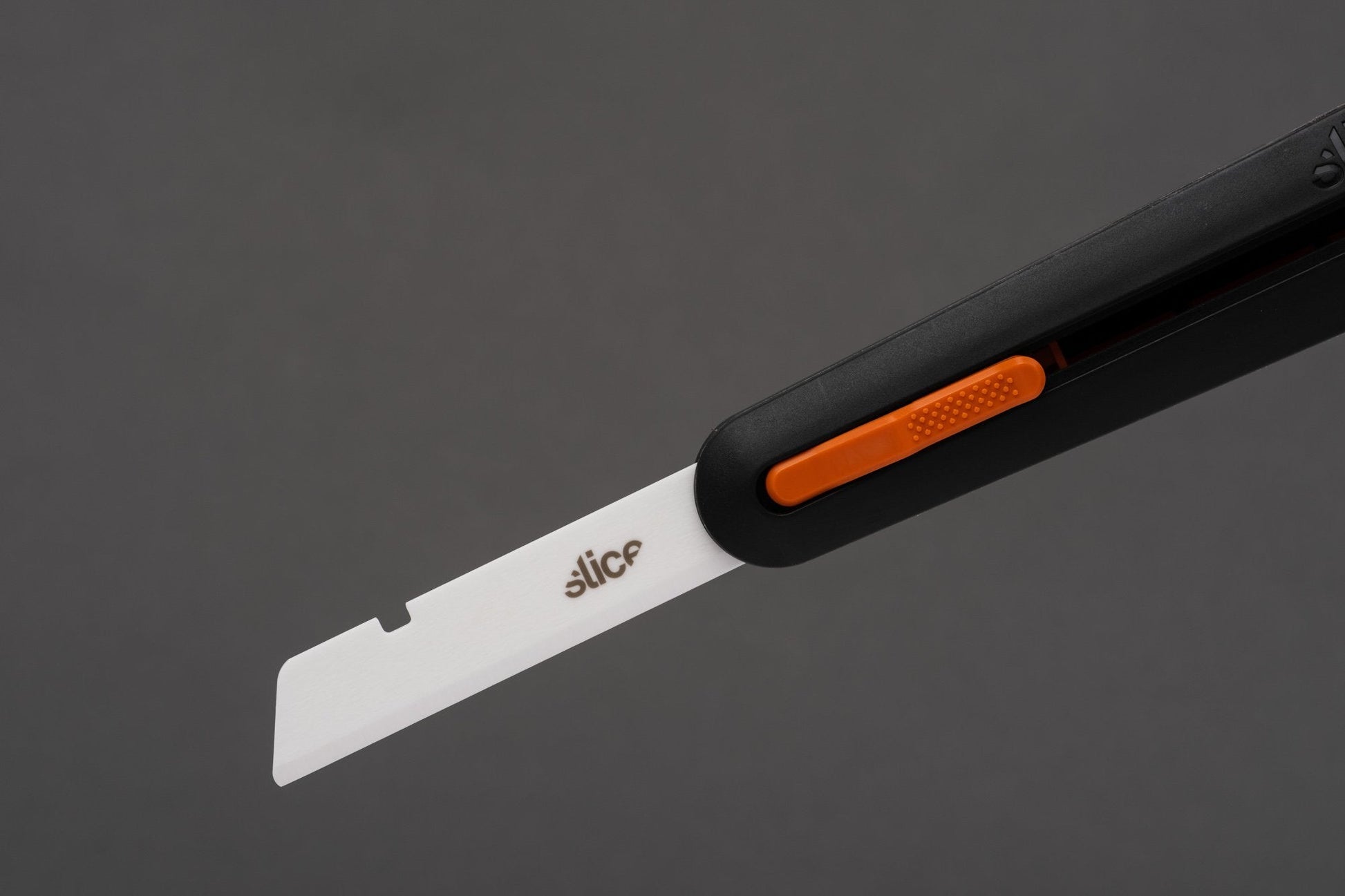 Los cutters industriales 10559 y 10560 incorporan cuchillas industriales con punta redondeada porque los jefes de seguridad prefieren una protección extra para evitar lesiones por corte. Sin embargo, la mayoría de los materiales no necesitan una herramienta en punta, por lo que sería una buena idea probar primero con la cuchilla 10538. Si necesitara un extremo puntiagudo para iniciar el corte en el material que vaya a cortar, entonces le recomendamos utilizar la cuchilla 10539. También vamos a lanzar al mercado una cuchilla industrial dentada ideal para cualquier aplicación en la que necesite serrar con su cutter industrial de Slice.